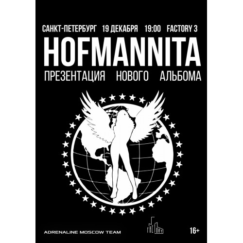 Большой концерт с презентацией нового альбома а также всеми хитами HOFMANNITA состоится 19 декабря в клубе FACTORY 3. Санкт-Петербург, 16+.