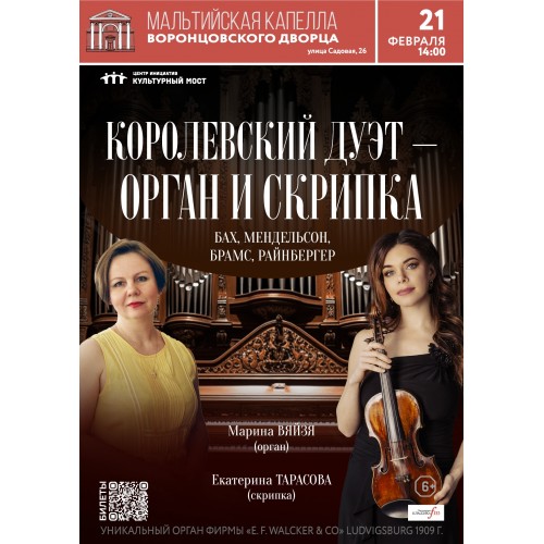 Мальтийская капелла продолжает традицию необычных органных концертов! 21 февраля в единой гармонии прозвучат «король инструментов» орган и «королева оркестра» скрипка.