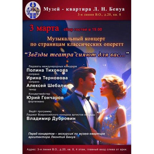 Перед концертом гостей познакомят с мемориальной квартирой Л. Н. Бенуа.