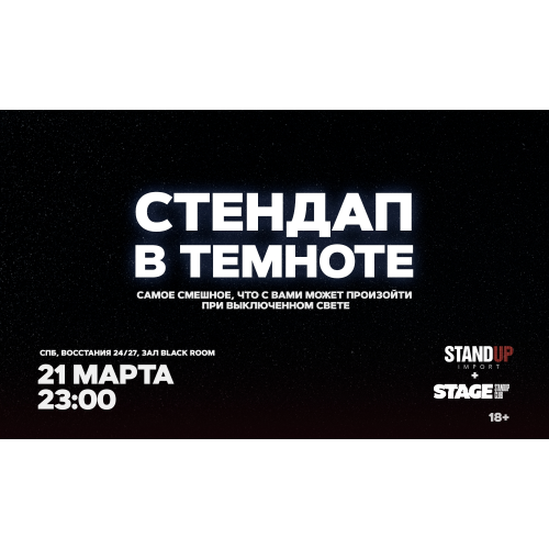 Мероприятие пользуется особой популярностью среди опытных зрителей стендапа. Этот формат требует от комика полностью сосредоточиться на тексте шутки, который должен вызывать смех без отыгрышей в абсолютной темноте.