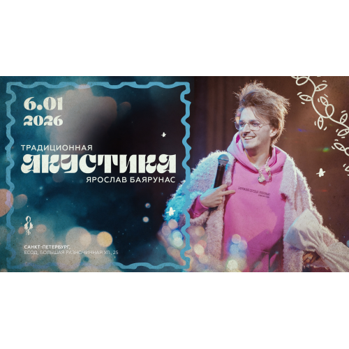 «Очередность Традиционной Новогодней Акустики наконец достаётся Санкт-Петербургу. Ваш покорный слуга с каждым годом всё реже и реже посещает свой родной город, но долг перед ним и вами, дорогими зрителями, – он вечен! Я с удовольствием приезжаю в Питер, встречу Новый Год с семьёй впервые за 10 лет и останусь здесь, чтобы подарить вам классный, гитарный, и убойно добрый Новогодний концерт!» (Ярослав Баярунас)