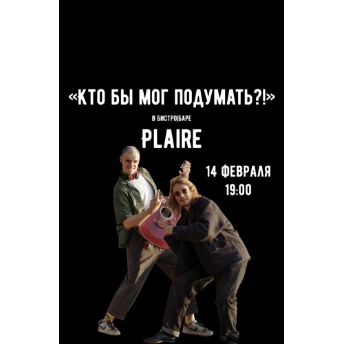 В вечер, созданный для близости и настроения, в Plaire выступит дуэт музыкантов "Кто бы мог подумать?!" с программой, в которой знакомые мелодии звучат мягко, чувственно и по-новому.