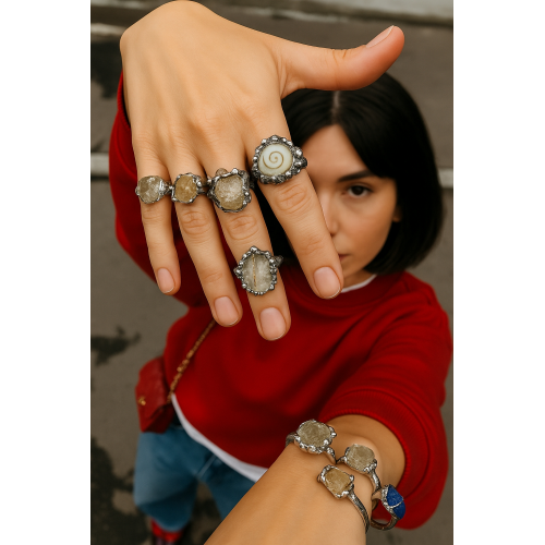 Вы можете сделать кольцо или кулон с камнем на выбор из наличия (есть кристаллы, натуральный жемчуг и другие натуральные камни, а также ракушки).