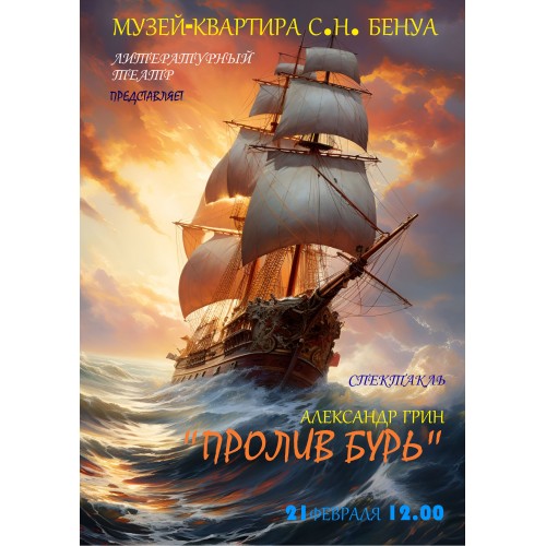 21 февраля в 12.00 в Музее-квартире С.Н. БЕНУА состоится спектакль «Пролив бурь», поставленный Литературным театром по мотивам одноименной новеллы знаменитого писателя Александра Грина.